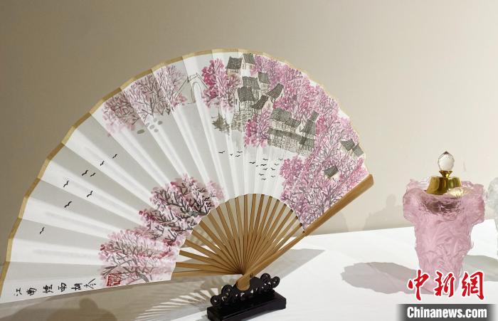 扇面书画《江南烟雨》。中新网记者崔佳明摄