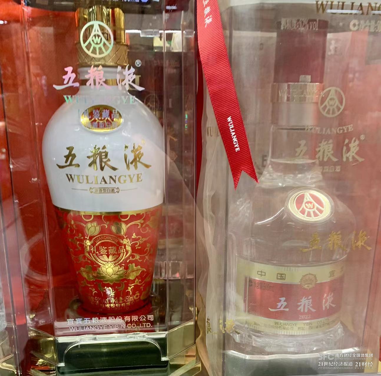 (图中右侧为第八代五粮液,21记者摄于重庆本地商超)