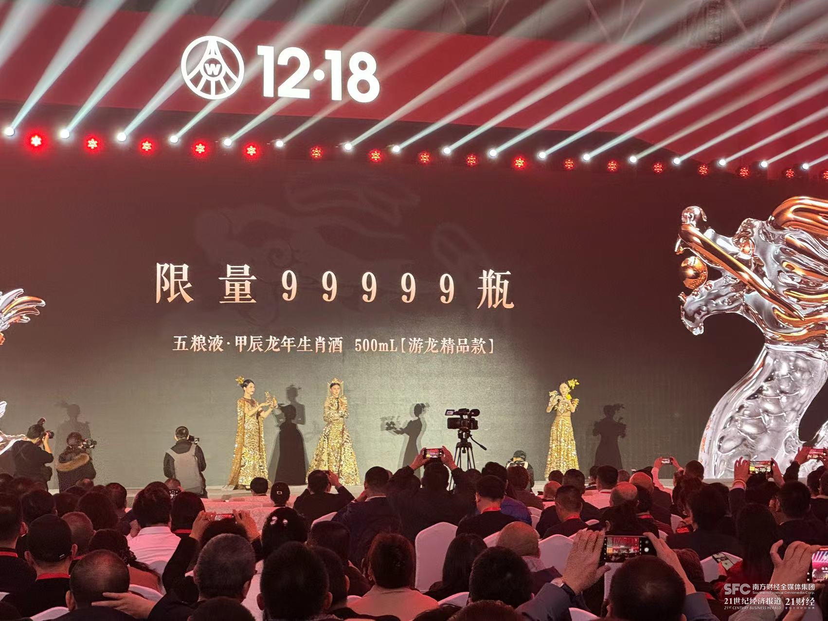 (五粮液去年1218大会上推出了甲辰龙年生肖酒,21记者摄)